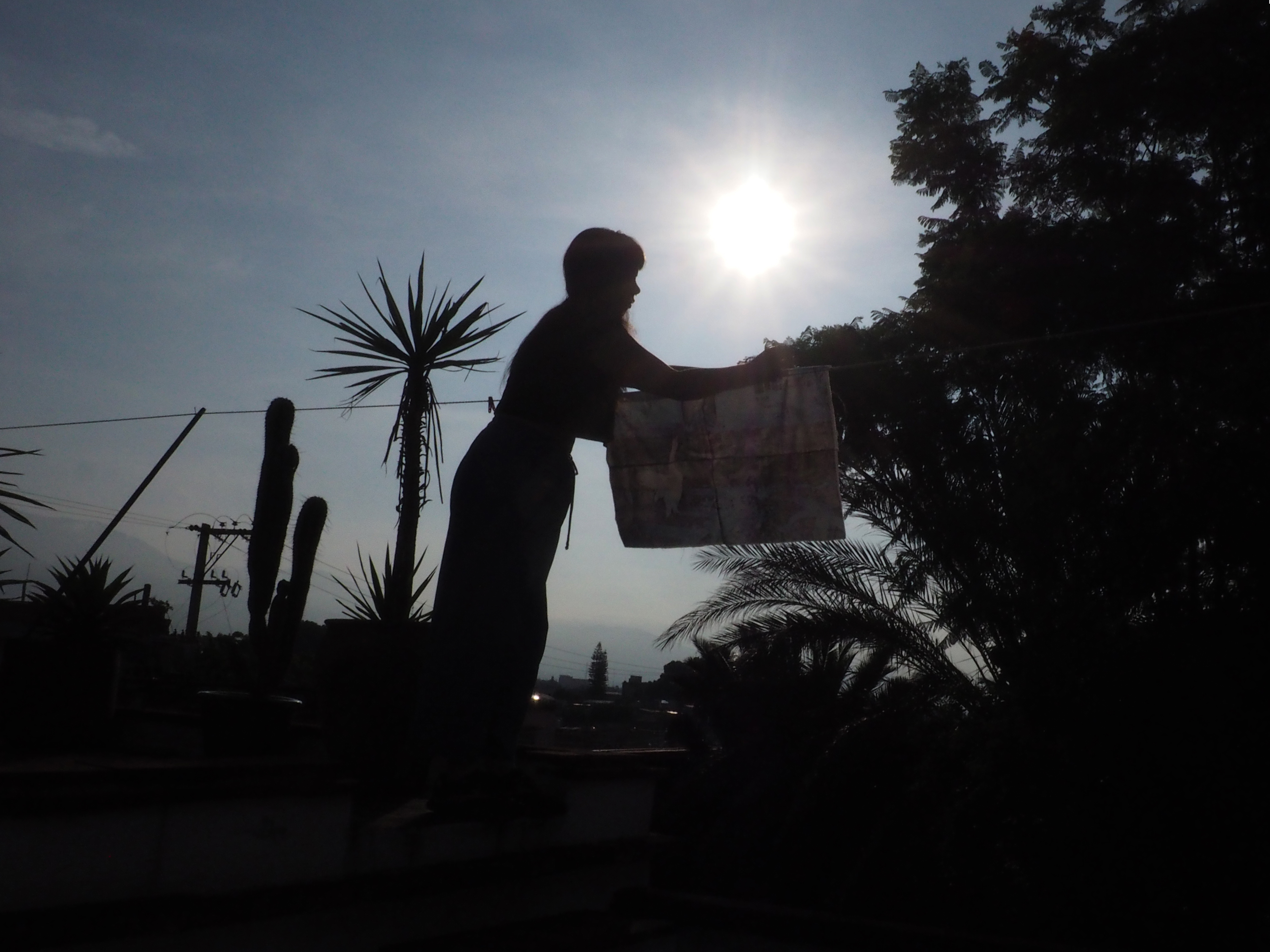 I use the flag to represent temporary and portable territories of memory that I can move around in my exile. As materials, I use photographs I took of my mother and her photo archive.