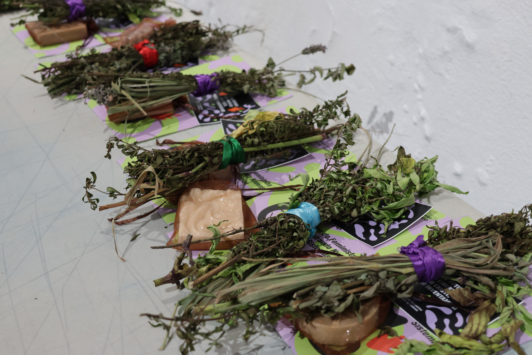 La exposición presenta el resultado de investigaciones individuales y colectivas para fomentar colaboraciones artísticas y conversaciones que buscan visibilizar violencias actuales e históricas hacia cuerpos humanos y no-humanos y para cuestionar las historias oficiales de nuestros respectivos países y las exclusiones de las mujeres y disidencias en el arte contemporáneo y de la región. Utilizamos distintas herramientas de resistencia para generar imaginarios de futuros compartidos en solidaridad, sanación y liberación por medio del arte. Creamos redes comunitarias, intervenciones en el espacio público, un archivo de nuestros procesos, referencias, inspiraciones y una biblioteca centraka de arte feminista.