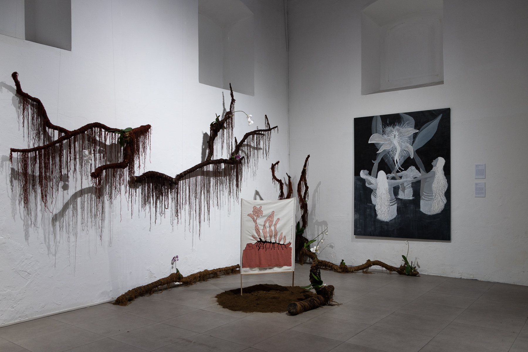 The exhibition presents the result of individual and collective research processes that foster artistic collaborations and conversations aimed at making visible current and historical violence against human and non-human bodies, while questioning the official histories of our countries and the exclusions of women and dissidences in contemporary and regional art. We use various resistance tools to generate imaginaries of shared futures rooted in solidarity, healing, and liberation through art. We create community networks, public space interventions, an archive of our processes, references, inspirations, and a Central American feminist art library.